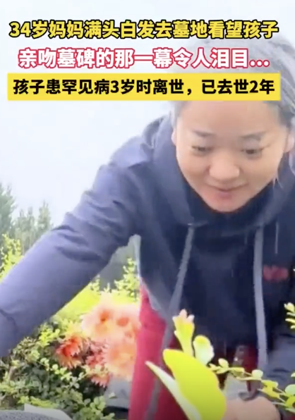 宝宝病逝34岁妈妈满头白发亲吻墓碑 母爱无尽思念