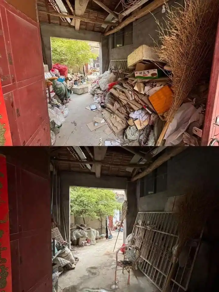 那天从下午一点,一直收拾到快五点,鼻腔里被各种复杂的味道堵住,身上沾满污垢,两条腿被虫子咬得全是红包,表哥的三轮车来来回回不知道多少趟。最后,变卖了大部分废品,换了500余元。我们又把连廊和院子扫干净,泼上水,喊姥姥回来。