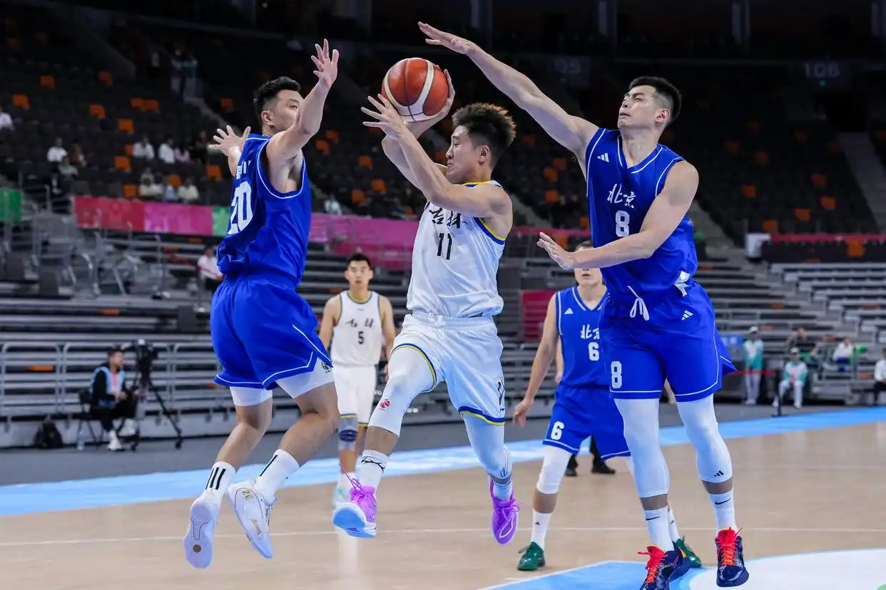 11月7日,在广东省东莞市举行的第十五届全国运动会篮球男子成年组小组赛中,北京队126比83战胜吉林队。