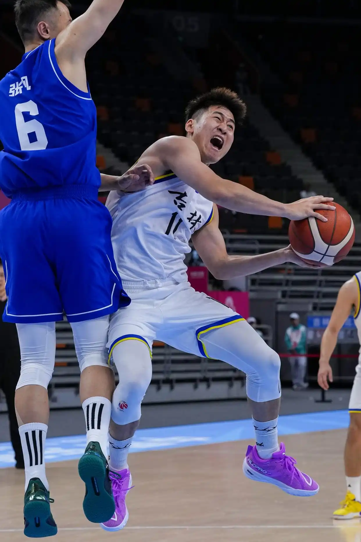 11月7日,吉林队球员张航源(右)在比赛中突破上篮。新华社记者 李博 摄