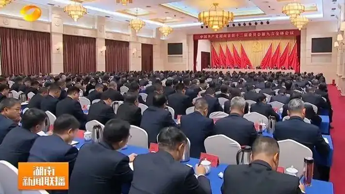 11月29日,湖南省委十二届九次全会第二次全体会议在湖南宾馆会议中心三楼大会厅召开。图源:《湖南新闻联播》