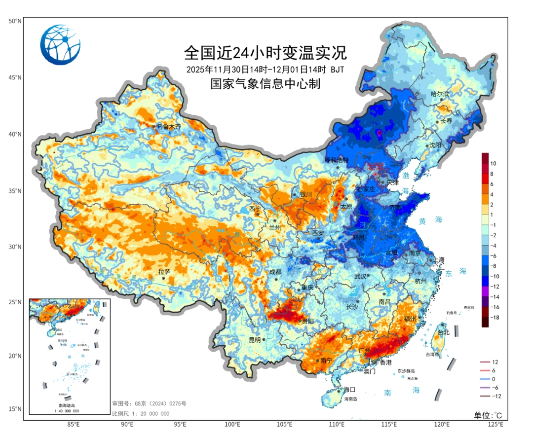 而12月开场,寒潮就要把这偏暖的格局一举扭转。