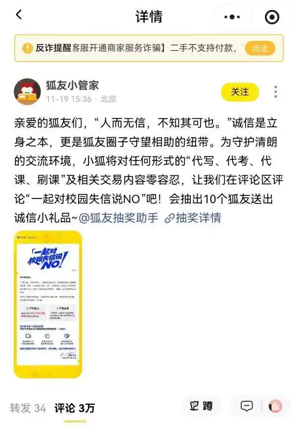 事实上除“狐友”外,小红书、闲鱼等社交平台也已成为此类高校灰色交易的聚集地。