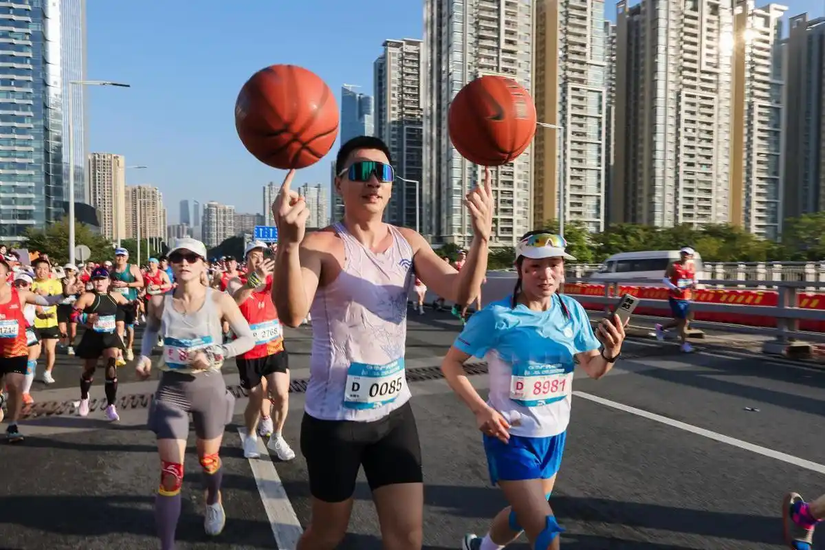比赛日现场,天河体育中心周边便已成为欢乐的海洋。除了全力竞速的精英跑者,众多市民也以创意装扮表达着对运动的热爱。