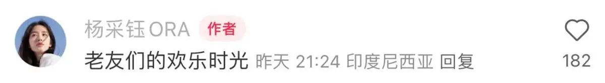 在评论区,杨采钰留言1"老友们的欢乐时光1",字里行间透露着惬意自在的生活状态。网友纷纷送上祝福,感叹优越的生活条件让她能够兼顾家庭与个人生活,聘请专业育儿团队照料孩子的同时,依然保持完美状态。这种无忧无虑的生活方式,确实为她的美丽与快乐提供了最佳保障。