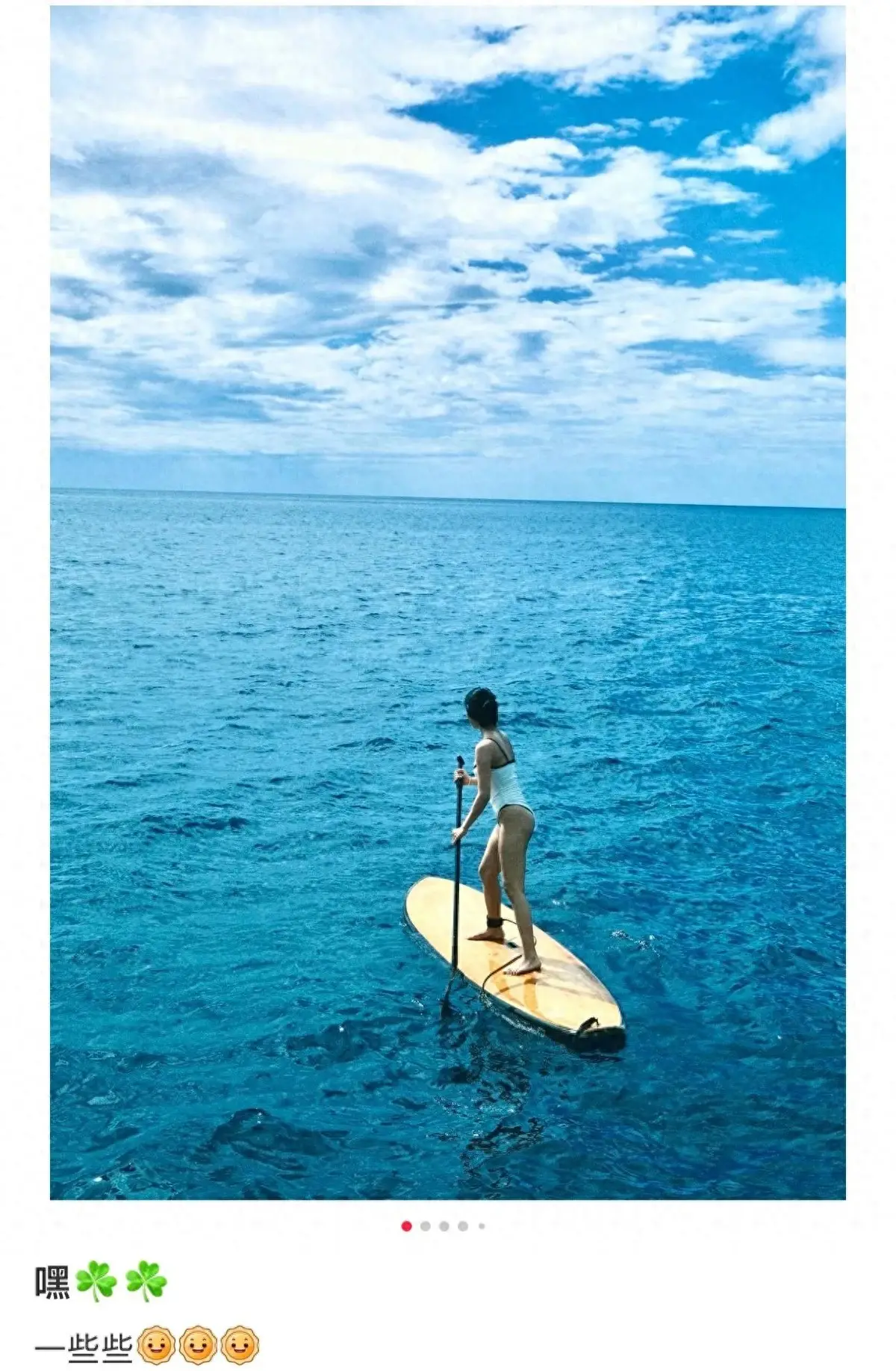 9月10日,演员杨采钰在社交平台分享了一组度假照片,并配文1"嘿,一些些1"。照片中的她身着泳装,独自在碧波中划桨,产后恢复良好的身材曲线一览无遗,整个人散发着健康活力的光彩。