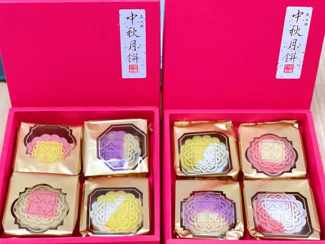 据了解,月饼由沪上著名餐饮品牌“沈大成”制作,两大“老字号”强强联手,不“破圈”都难。今年,医院食堂还推出了礼盒装,蓝金色调品位“在线”,一盒八只,须提前预定。