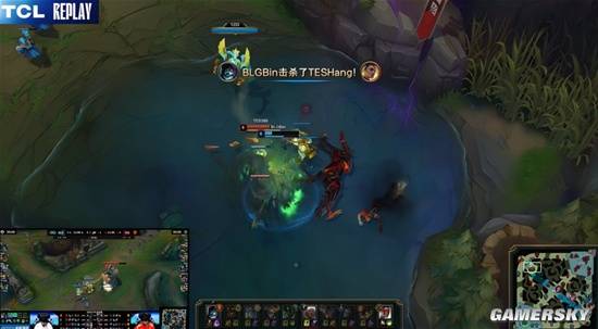 Bin:当时就是线被卡了,然后我觉得我的当时的装备,还有我的英雄是可以1打2的,然后我就去选择打了。