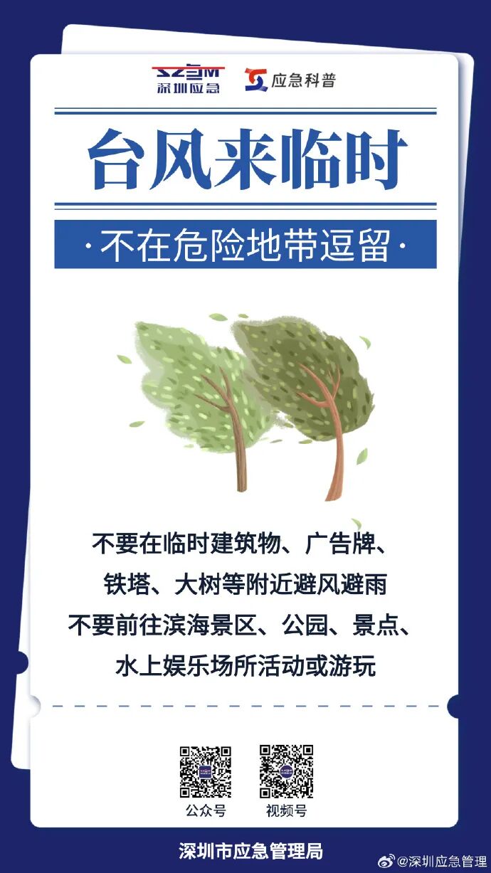 面对超强台风,千万不能心存侥幸。您的每一个准备动作,都至关重要,都是对家人最好的保护。同时,请市民朋友及时关注深圳气象局及深圳市应急管理局发布的最新消息。