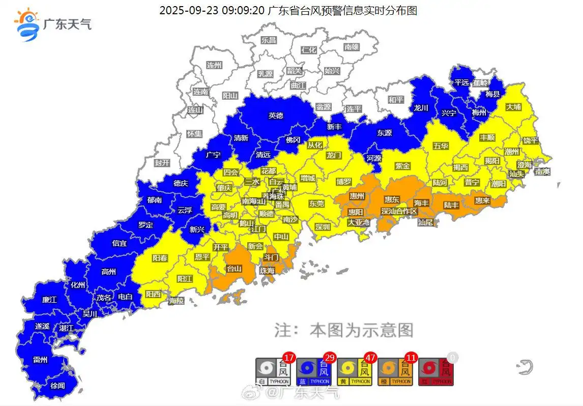 11橙47黄29蓝17白,广东多地持续预警!“桦加沙”最新路径→