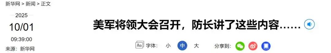 这次会议正值赫格塞思推动国防部大规模改革之际,改革措施包括裁减现役美军20%的四星上将,以及将“国防部”更名为“战争部”。