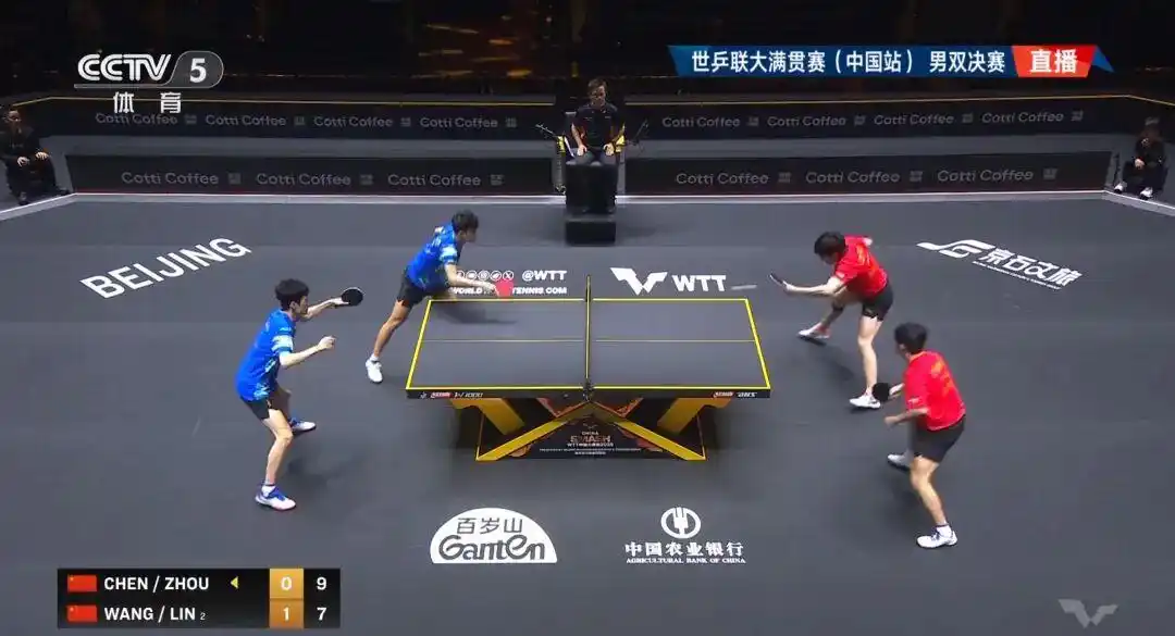10月4日,WTT中国大满贯男双决赛上演“中国德比”,王楚钦/林诗栋3-0战胜周启豪/陈俊菘,夺得冠军。中国队包揽男双冠亚军。这也是王楚钦中国大满贯第二冠。