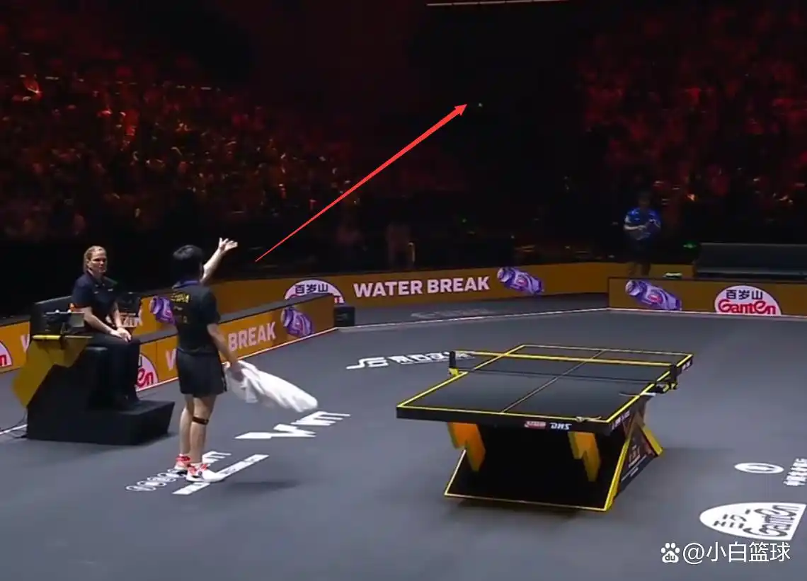 在第一局向鹏11-8完成逆转后,王楚钦直接走向裁判,他指着我画箭头的位置,一直在申诉有闪光灯干扰他,王楚钦至少跟裁判沟通了有个30秒,很明显王楚钦对球迷的闪光灯干扰很不满。【昨天女单半决赛,陈幸同也示意过有人用闪光灯干扰,当时陈幸同更是在比赛中直接申诉叫停了比赛】