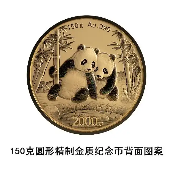 (九)150克圆形金质纪念币为精制币,含纯金150克,直径60毫米,面额2000元,成色99.9%,最大发行量5000枚。