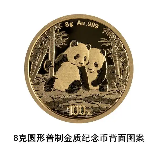 (三)8克圆形金质纪念币为普制币,含纯金8克,直径22毫米,面额100元,成色99.9%,最大发行量200000枚。